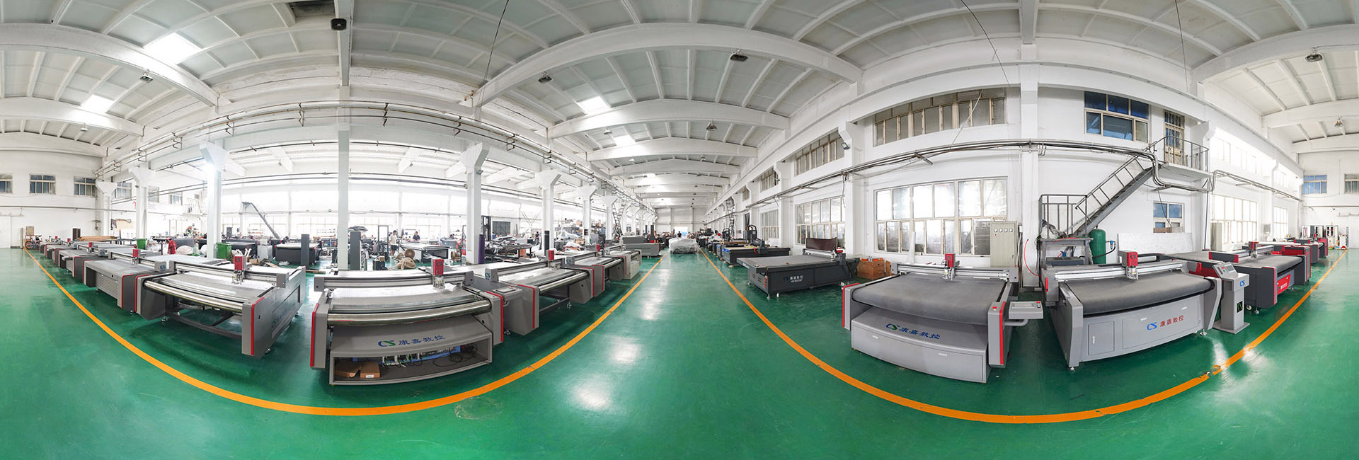 المصنع يغطي 10000 متر مربع، مع 150 موظفا في المجموع.الطاقة الإنتاجية حوالي 100 وحدة / شهر. تشمل منتجاتنا آلة القطع بالسكين المتأرجحة، آلة القطع بالليزر، جهاز التوجيه CNC وآلة القطع المعدنية.